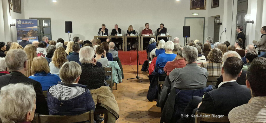 Bei der von Rio Konkret organisierten Podiumsdiskussion zur Bürgermeisterwahl 2026 stellten sich vier Kandidaten den Fragen der Bürgerinnen und Bürger. Mehrere hundert Interessierte füllten den Pfarrsaal St. Jakob und zeigten damit, wie groß das Interesse an der zukünftigen Entwicklung Wasserburgs ist.